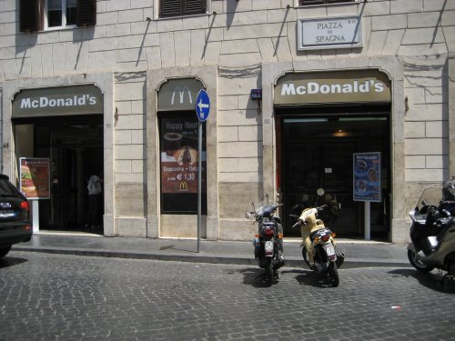 Siellä espanjalaisten portaiden juurella mäkkikin oli joutunut taipumaan väreistään. Mielenkiintoisena huomiona muuten fanta oli Roomassa paljon pistävämmän makuista kuin suomessa. Kokis sen sijaan maistui suunnilleen oikealta.