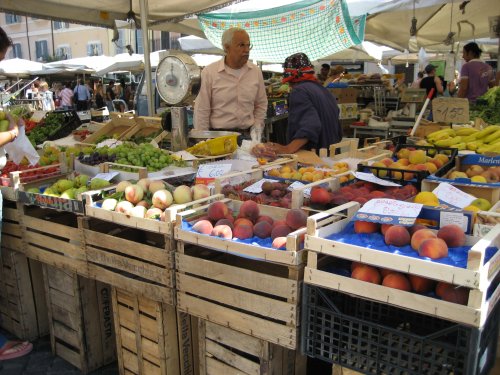 Tämä kuva taas on Campo dei Fiorilta, jossa valikoimaa riitti ja hedelmät olivat suomalaisista tarjonnasta poiketen kypsiä. Kukkia sieltä ei nimestä huolimatta paljoakaan löytynyt. Paikalla on ilmeisesti joskus aiemmin ollut niitty.